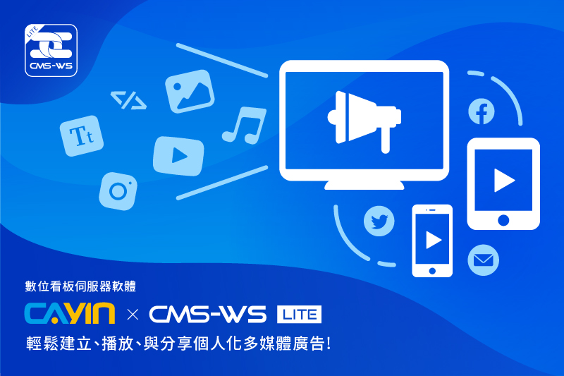 QNAP NAS 用户的专属产品,并使用 QTS 系统。 可连接多达 1000 个播放器,管理多媒体案和更新内容,可以直接在CMS-WS Lite服务器内创建模板,但字型与时钟仅能使用系统默认。多媒体播放器支持大部份 Web 语言,如 HTML5、 JavaScript和CSS,还支援 MP4 视频檔和 JPEG、GIF、BMP 图像文件。