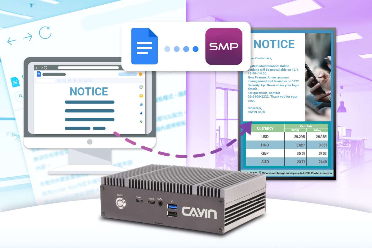 铠应科技(CAYIN Technology)正式发布其全新一代产品—— SMP-2400 数字告示播放器,此产品革新了内容管理方式,整合 Google Doc 功能,允许用户透过直接编辑 Google 文件实现即时同步至数字告示,优化数位内容更新工作流程。