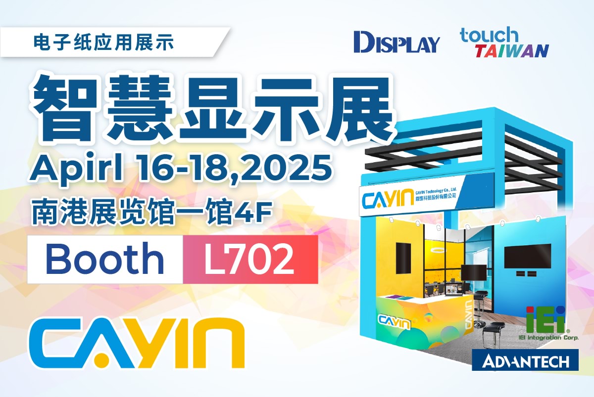 鎧应科技将在 2025 Touch Taiwan 展览(4月16日至18日)于南港展览馆一馆四楼 L702 展位展出其最新的电子纸整合应用、专业数字告示解决方案,以及 GO CAYIN 云端数字告示内容制作与播放系统,助力行业迈向智能显示新时代。