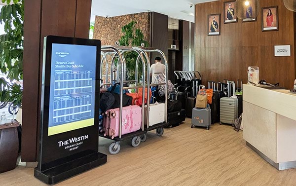 CAYIN’s CMS-WS solution powers 14 Samsung displays strategically placed throughout the resort—spanning the front office, lobby, dining areas, meeting rooms, and grand ballrooms of the convention center. These displays enhance the ambience, reinforce the Westin brand identity, and create a dynamic first impression for every guest. From warm greetings for special groups to event branding, the digital signage adds a touch of personalization that traditional signage simply cannot match.