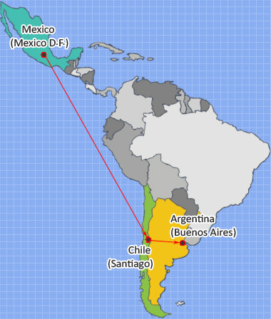 Lugar: México (México D.F.) del 28 al 30 de agosto, Chile (Santiago) del 31 de agosto al 2 de septiembre, Argentina (Buenos Aires) del 3 al 6 de septiembre.