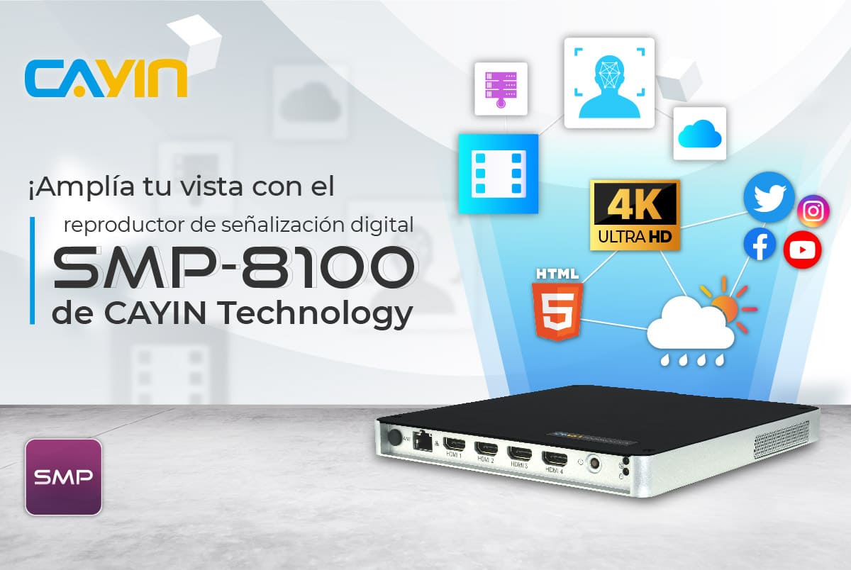 CAYIN Technology, proveedor líder de soluciones de señalización digital, ha anunciado el lanzamiento del reproductor de señalización digital SMP-8100, la última incorporación a la familia de soluciones Robustie. Este reproductor está equipado con cuatro salidas HDMI, lo que lo convierte en una excelente opción para aplicaciones de paredes de video de tres o cuatro pantallas. Con características y capacidades avanzadas, el SMP-8100 establece un nuevo estándar para los reproductores de señalización digital en el mercado.