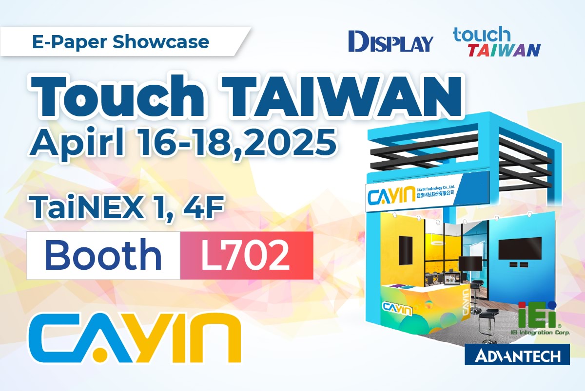 CAYIN Technology participará en Touch Taiwan 2025, del 16 al 18 de abril, en el stand L702, cuarto piso del Nangang Exhibition Center Hall 1. La compañía presentará sus últimas innovaciones en integración de papel electrónico, soluciones profesionales de señalización digital, y su plataforma basada en la nube GO CAYIN para creación y reproducción de contenido, abriendo nuevas posibilidades en aplicaciones de visualización inteligente.