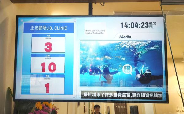 PilotTV Media は、コアとなる呼び出し管理システムの開発と統合を担当。CAYIN のプレーヤーと深く連携することで、1 対 1・多対 1 の表示構成に対応 —— 診療所が診察室の運用をどう変えても、呼び出し情報は常に正しい画面に、正しいタイミングで表示されます。