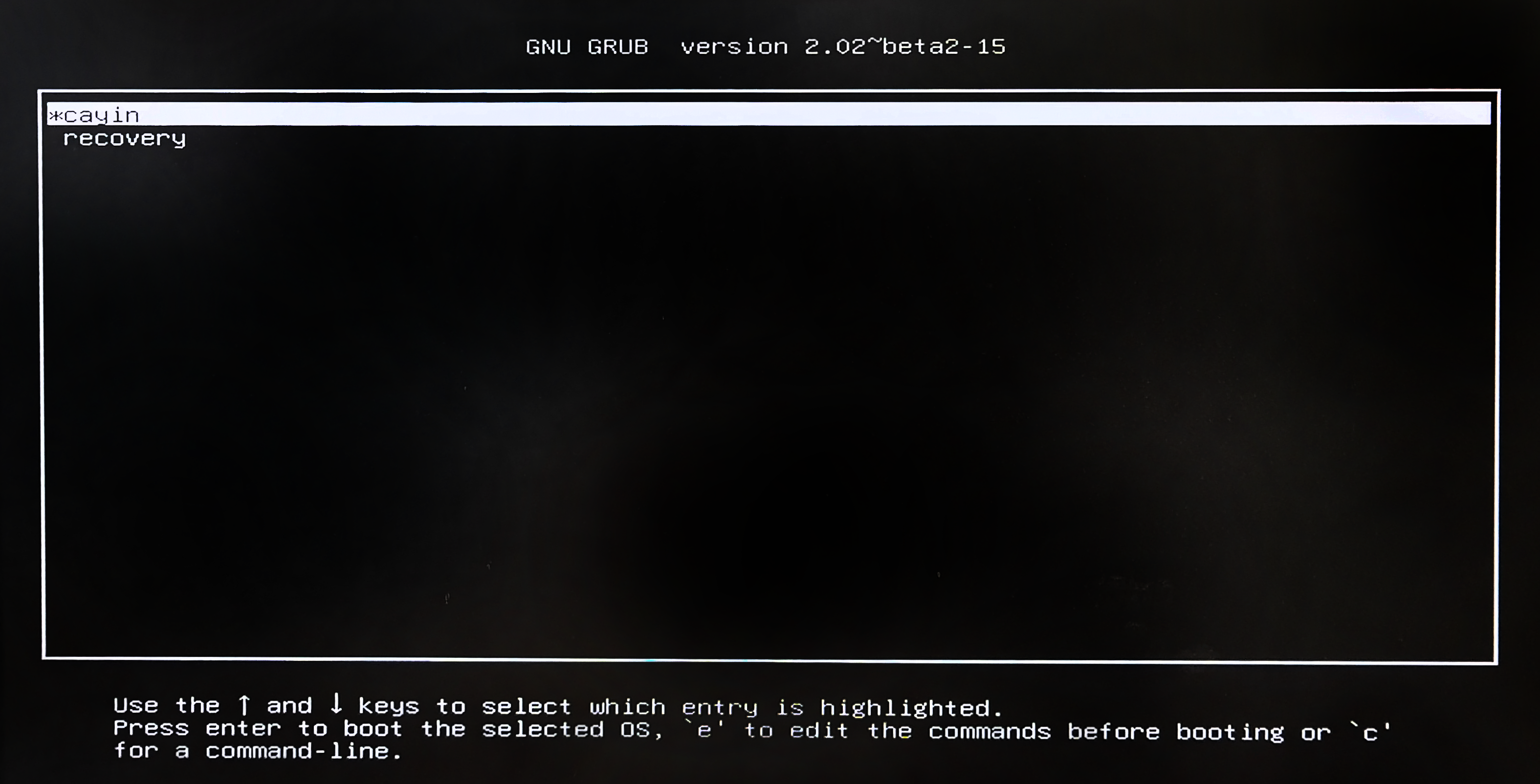 PASO 2 : Mantén presionada la tecla ESC mientras enciendes el dispositivo. Entrarás en la interfaz del BIOS; luego, presiona la tecla Esc para salir del BIOS sin guardar los cambios. Después de eso, aparecerá el menú del cargador de arranque (cayin&recovery).